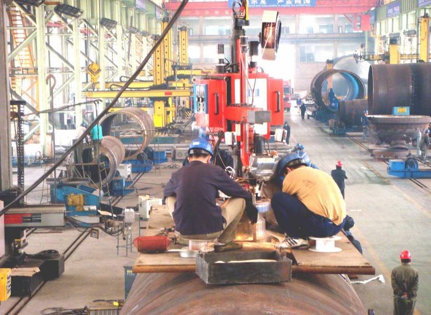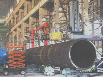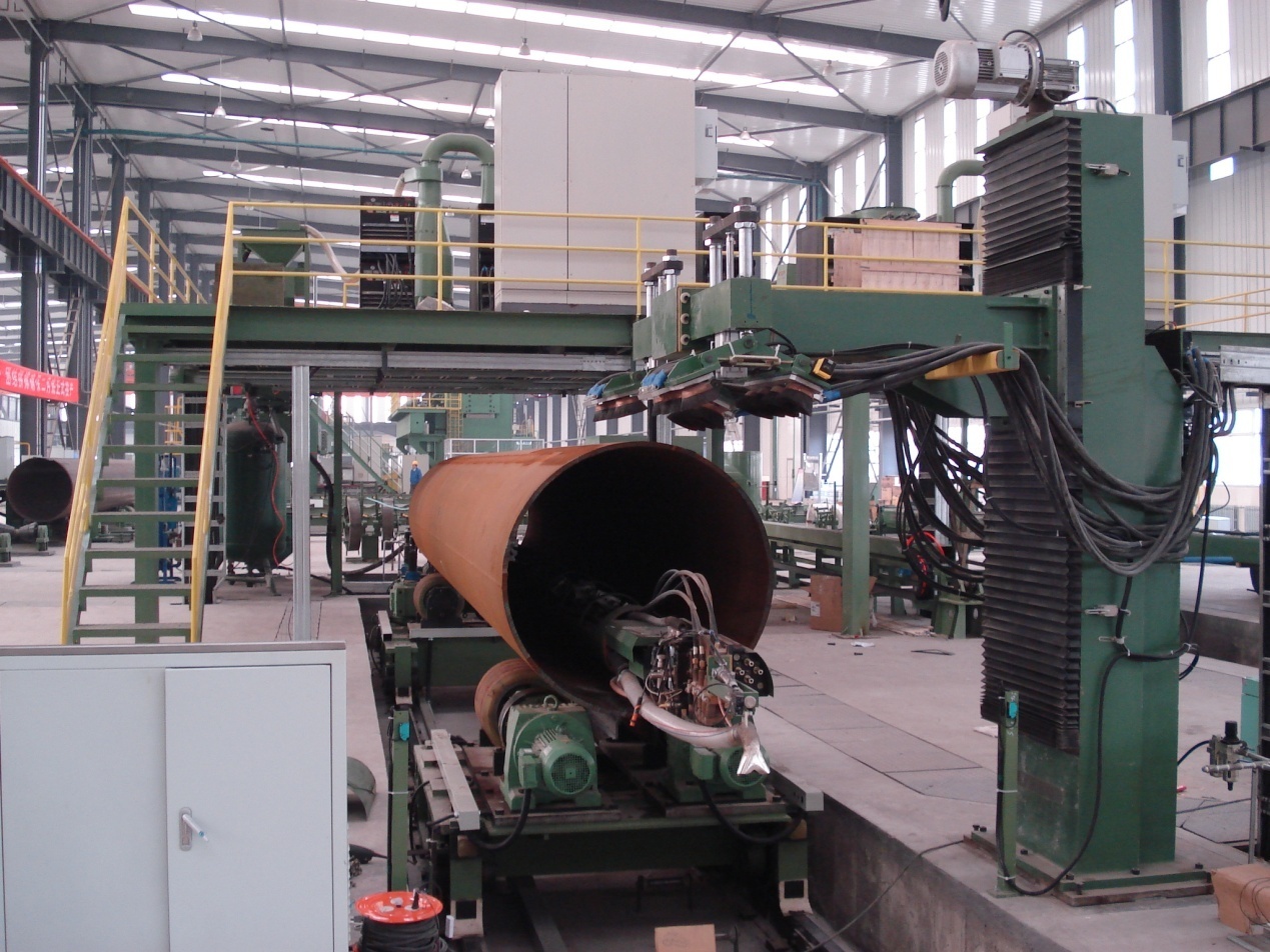 ● 2套(3套)四絲內(nèi)焊:預(yù)焊之后,在鋼管內(nèi)部進行4絲埋弧焊接。