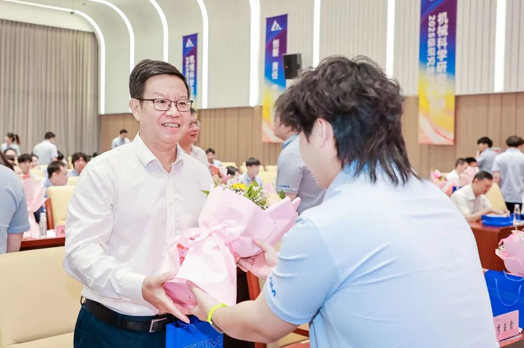 典禮上,王德成、李玉鑫及導師代表共同為新生佩戴總院徽章。這枚徽章不僅象征著中國機械總院人的身份,更承載著“以提升中國裝備制造水平為己任”的使命與榮光。優(yōu)秀導師獎、最受歡迎教師獎、新生入學獎學金和優(yōu)秀課程獎獲獎代表上臺領獎。新生代表手捧鮮花向?qū)焸儷I上誠摯敬意與節(jié)日祝福,表達莘莘學子的感激之情。